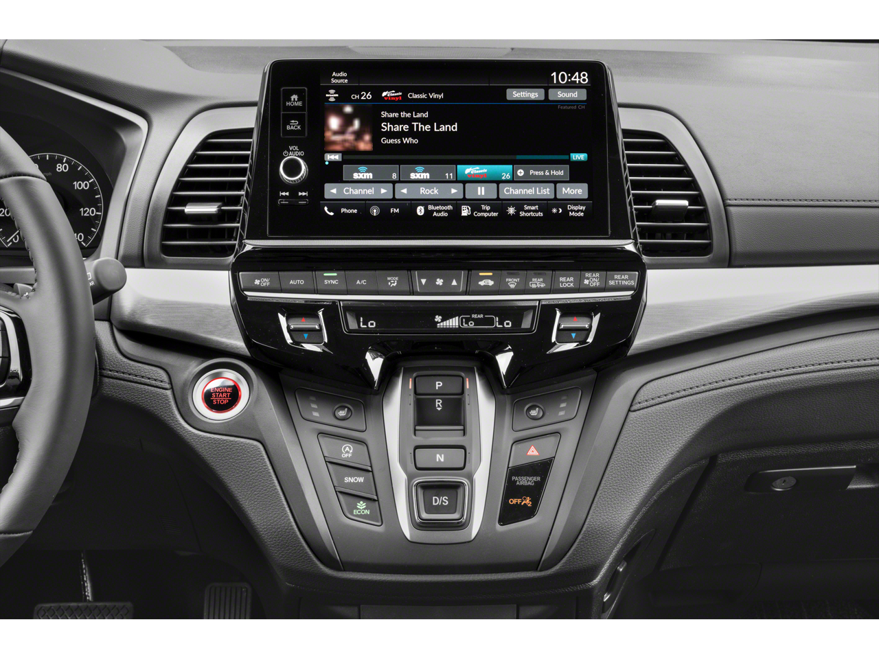 - Radio: 160-Watt AM/FM/HD/SiriusXM Audio System -inc: 7 speakers including subwoofer, 9" color touchscreen display, 7" TFT Meter, Bluetooth® HandsFreeLink, Bluetooth® streaming audio, HondaLink, Speed-Sensitive Volume Compensation (SVC), Radio Data System (RDS), wireless Apple CarPlay compatibility, wireless Android Auto compatibility, 2.5-amp USB smartphone/audio interface, CabinTalk in-car PA system, illuminated steering wheel-mounted controls and fin-type roof-mounted antenna, All SiriusXM services require a subscription, sold separately by SiriusXM after the trial period, If you decide to continue service, the plan you choose will automatically renew at the then-current rates, Fees and taxes apply, See the SiriusXM customer agreement and privacy policy at www.siriusxm.com for full terms and how to cancel, which includes calling 1-866-635-2349, Available in the 48 contiguous U.S, and D.C, Some services and features are subject to device capabilities and location restrictions, All fees, content and features are subject to change, SiriusXM, Pandora and all related logos are trademarks of Sirius XM Radio Inc, and its respective subsidiaries